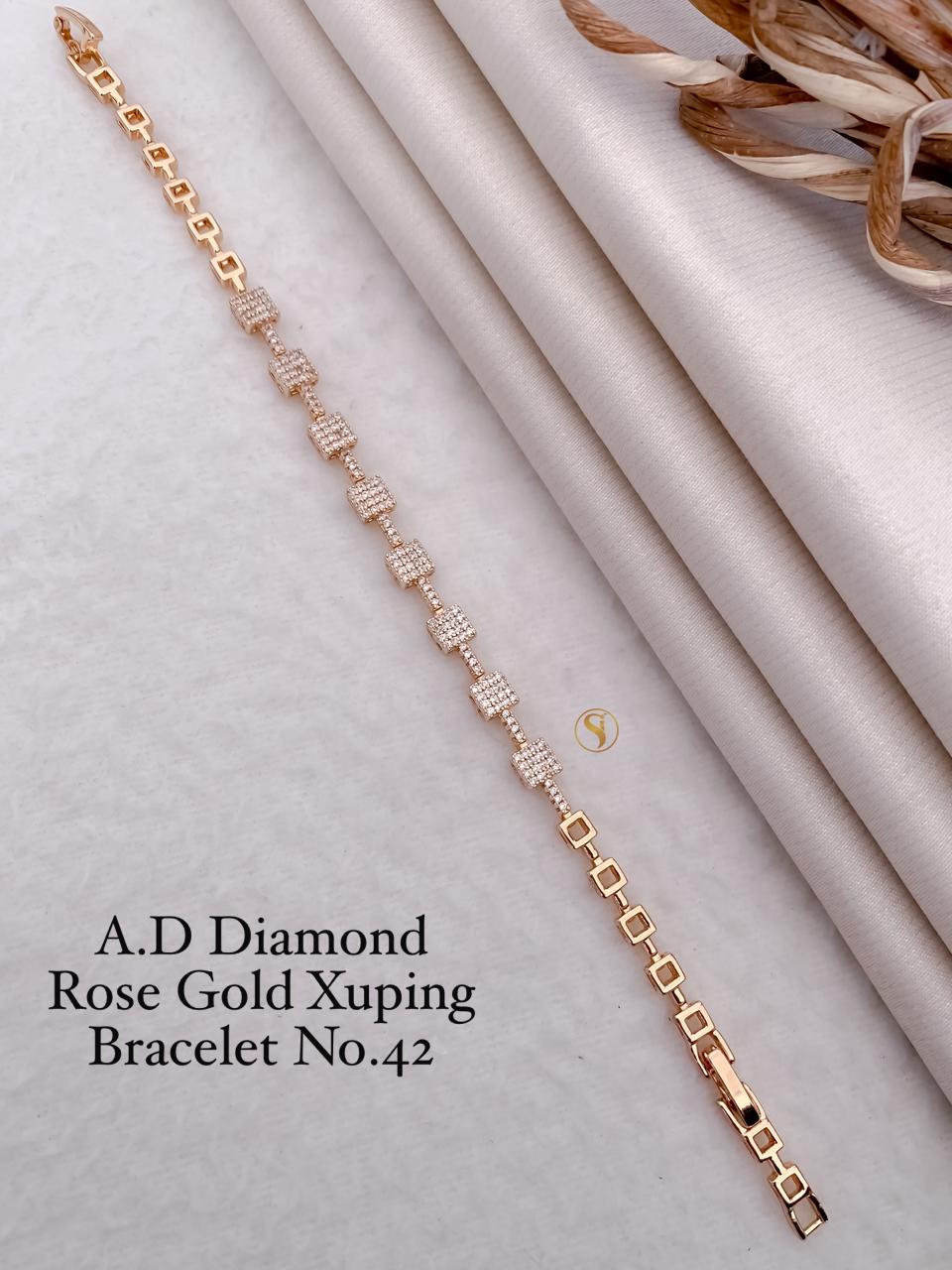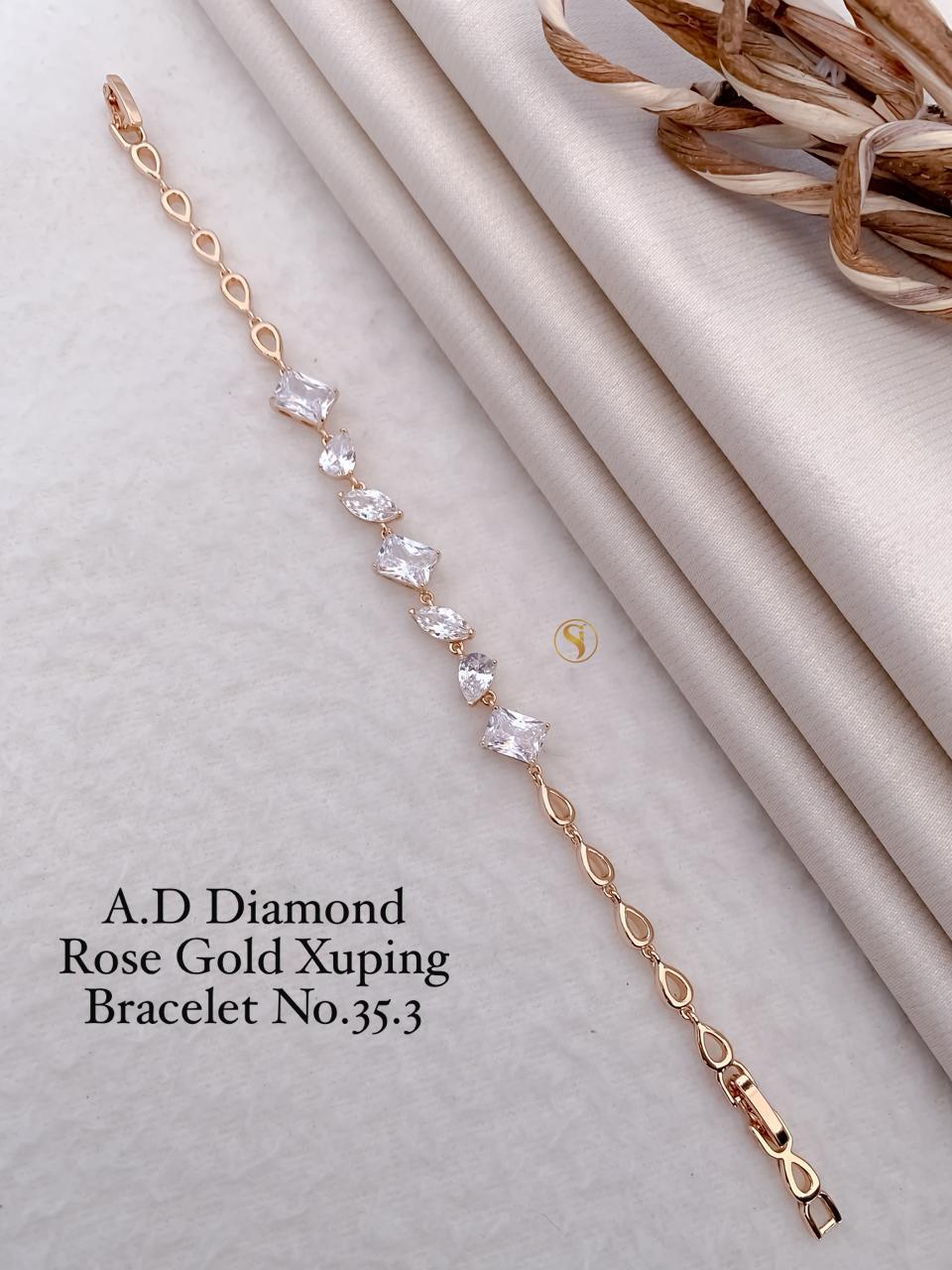 Golden Bracelet with Oval Drop and CZ Studs