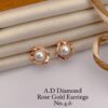 Golden Earrings with Matte Finish and Stone Studs